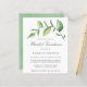 Rustic budget bridal luncheon-uitnodiging met een eenvoudig ontwerp met een groene waterverf die met grote bladeren over een witte achtergrond is geschilderd. Hieronder vindt u de details van uw voorvallen in een zachte grijs en de achterkant heeft een lichtgroene waterverf. Een elegant botanisch ontwerp dat geweldig is voor een feest in de zomer. Deze goedkope bruidmakreeluitnodigingen zijn op vellen papier gedrukt voor een budgetvriendelijke optie.