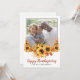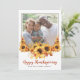 Een mooie Happy Thanksgiving-kaart met een familiefoto met zonnebloemen en een moderne scripttypografie. Pas je aan met je familienaam.