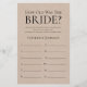 Dit liefelijke, rustieke "Hoe oud was de bruid?" spelvel voor de bruidsjonker is eenvoudig en charmant - perfect voor elke bruidsjonker. Dit leuke en makkelijke spel zal zeker voor veel gelach zorgen op elke bruidsjonker! Laat familie en vrienden foto's van de bruid op verschillende leeftijden sturen en laat ze afdrukken. Nummer ze en leg ze bij deze spelvellen. Geef gewoon een vel aan elke gast (en vergeet de pennen niet) en laat de competitie beginnen! Je zult verbaasd zijn hoeveel mensen de leeftijd van de bruid echt weten. In enkele seconden kun je zien hoe je spelvel eruit zal zien. Selecteer gewoon "Personaliseer deze sjabloon" en typ de naam van de bruid.
