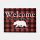 Voeg de bijtende bossen warmte toe aan uw deur! Het rode en zwarte buffelvormig controlelvormig met een wit beer silhouet en de uitdrukking "Welkom in onze nek van de bossen" in vet wit.
