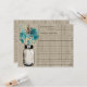 RECIPE KAART: Ideaal voor een Vrijgezellenfeest op landstijl of misschien hou je gewoon van Mason Jars voor elke gebeurtenis! Mason Jar hangt aan een haak vol met landelijke bloemen. Een Rustic Tan Barn Wood Achtergrond met de hangende Mason Jar en bloemen in Blauwgroen kleuren, Light Curry Yellow, Aruba Blue en Rust Brown. Als u vragen hebt over dit ontwerp of als u een kleurwijziging wilt, kunt u een e-mail sturen naar paula@labellarue.com Controleer ook of de Kaarten van de Wedding Suite, INVITATION, RSVP, RECEPTION en GUEST-ZITTING overeenkomen.