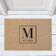 Aangepast ontworpen vormgeving met robuust modern zwart en natuurlijk design met gepersonaliseerde familienaam monogram.