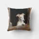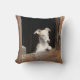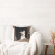 Een elegante kussen met een jonge puppy die uit een raam kijkt.
