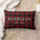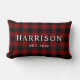 Pas dit stijlvolle en moderne, gepersonaliseerde ontwerp aan met klassieke zwarte en rode buffelgebarentrande tartan met uw eigen namen en het "jaar vastgesteld" in trendy typografie op een zwart vierkant. Geweldig geschenk voor het bijtende thuis, de cabine of voor gebruik tijdens de kerstvakantie.