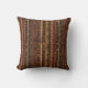 Warme geometrische streeppatroon kussen met tribale diamanten, zigzaggen en textuurrijke verticale banden in aardse bruine, terracotta, tan, beige en houtskool tinten. Een knus boho ontwerp ideaal voor southwestern decor liefhebbers, rustieke stijl fans en iedereen die aangetrokken wordt tot aardse, handgemaakte esthetiek.