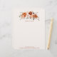 Deze elegante briefkraag bevat een roze bohemenbouquet van sinaasappel, perziken, wazige en taupe bloemen en neutrale botanische bladeren op een zachte, struik roze achtergrond met terracotta gekleurde tekst.