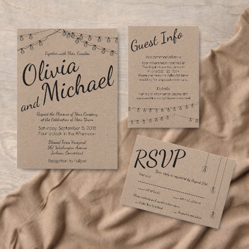 Rustic Wedding met String Lights op Kraft Paper Kaart