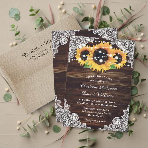 Rustic Wood Lace Sunflower Wedding Servet