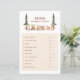 Houd gasten vermaakt met dit bosrijke "Guess the Price" baby shower spel, met rustieke bosdetails en lieve bosdieren. Perfect voor herfst- of winterdouches, deze klassieke activiteit voegt lachen en plezier toe aan uw feest. Coördineert met onze bijpassende houtuitnodigingen en feestborden voor een complete look.