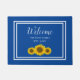 Geniet van dit elegante monogram welkomstmodel op een blauwe achtergrond. Een eenvoudige witte grens en witte klantgerichte letters staan u toe om uw eigen informatie toe te voegen. Gele zonnebloemen voegen een bijtende stijl aan dit object toe, waardoor het perfect is voor het verwelkomen van gasten bij je thuis of op vakantie.