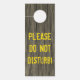 Dit rustieke ontwerp is voorzien van de boodschap "ALSJEBLIEFT NIET STOREN!", samen met een faux houten patroon look achtergrond.