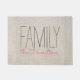 Schattige en eenvoudig rustiek ontwerp met deurmat met FAMILY in handgeschreven typografie en voeg uw eigen aangepaste familienaam of monogram toe in ROZE. Houd er rekening mee dat de achtergrond een BEDRUKTE faux BEIGE Linnen textuur is. Klik op de knop Aanpassen om uw eigen tekst toe te voegen voor een uniek, gepersonaliseerd ontwerp. Zo schattig!! Als u hulp nodig hebt bij het aanpassen, veranderen van kleur of iets anders aan een van mijn design, neem dan contact op met CitronellaMonogram designer.