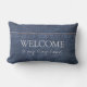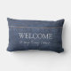 Rustieke faux denim blauw Welkom op mijn kleine huis Lumbar Kussen. U kunt eenvoudig uw eigen tekst toevoegen om te personaliseren.