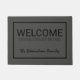 Rustiek donkergrijs Welkom Home Sweet Home deurmat. U kunt de tekst eenvoudig wijzigen en uw eigen naam toevoegen om de deurmat te personaliseren. Mooie deurmat om uw gasten te verwelkomen.