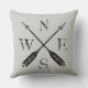 Rustiek en Eenvoudig Kompas Kussen met versleten letters en pijlen in zwart op lichtgrijze achtergrond. Het ontwerp is zowel op de voor- als achterkant gedrukt. Zoek dit ontwerp ook op andere producten van Simple Living.