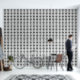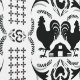 Zwart-wit landelijk rustiek decor patroon met rug-tot-rug hanen en een schuur met extra bloemstijl (floralia) details van Holiday Hearts Design.