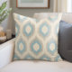 Rustiek linnen beige en blauwe Ikat print Kussen