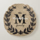 Rustieke bruine faux burlap als achtergrond met zwarte geëtste stijl laurels en fleur de lis accent op de bodem. Personaliseer door uw eigen familiegegevens toe te voegen.