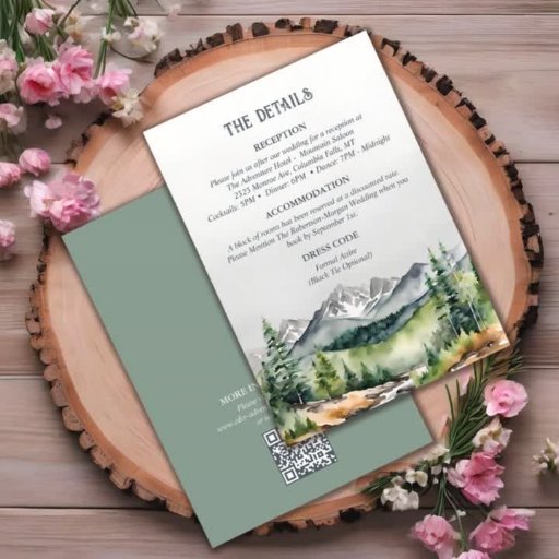 Dit prachtige rustieke avontuur begint met een huwelijksuitnodiging met een waterverf beschilderd berglandschap, bos, pijnbomen en een mooie salie groene rug, ideaal voor herfst-, winter- of bestemmingsbruiloft. Personaliseer het met de details van je trouwdag.