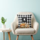 Licht uw home herfst decor met een lief en chique gooi kussen beschikt over een zwart en wit geruite ontwerp, met een faux-katoenen textuur look, dat is de achtergrond voor een schattige herfst cottagecore tuinscène van pompoenen, bloemen en een schattige kleine eekhoorn, in felle herfstkleuren. Personaliseer met een initiaal in een modern bloklettertype in wit op een zwart vierkant dat aan de voor- en achterkant wordt weergegeven. Klik op de knop Aanpassen om de initialen (gelijk of verschillend) toe te voegen in de velden sjabloon.