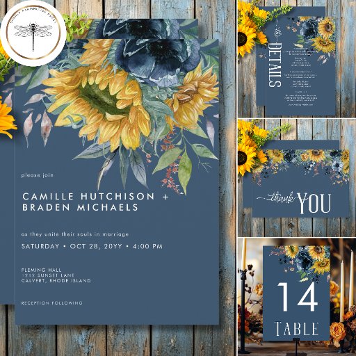 Rustic Dusty Blue Sunflowers WeddingOntworpen door Kathe Santillo