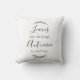 Op maat ontworpen decoratief werpkussen met "Bladeren vallen. De herfst roept." handkalligrafie omcirkeld in handgetekende lauwerkrans.