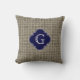 Rustieke jute look, marineblauw quatrefoil monogra kussen
