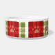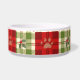 Rustic Christmas Dog Bowl - Rood, Groen & Crème Plaid met Paw Prints Serveer de maaltijden van uw pup in feestelijke stijl met deze Rustic Christmas Plaid hondenkom. Met een gezellige rode, groene en crèmekleurige plaid versierd met subtiele pootafdrukken en hulstveren, is het de perfecte mix van boerderijcharme en vakantiejuichen. Een praktisch maar stijlvol kerstaccessoire dat seizoensgebonden warmte naar het voerstation van uw hond brengt.