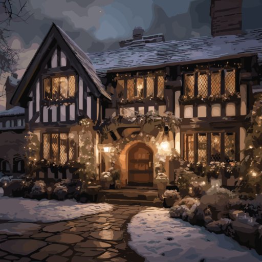 Ervaar de betoverende aantrekkingskracht van een rustiek Tudorhuis versierd met twinkelende lichtjes, geurige groenblijvende planten en de zachte omarming van verse gevallen sneeuw. Onze "Rustieke Kerstmagie"-collectie legt de tijdloze schoonheid vast van een knus houten en stenen toevluchtsoord en roept de warmte en nostalgie op van Kerstavond in een winterwonderland.