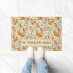 Een schattige rustieke landelijke boerderijen deurmat met beschilderde kippen en bloemetjes en je familienaam, met een aardse sfeer.