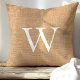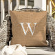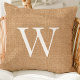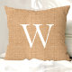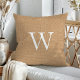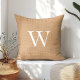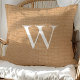 Rustieke namaak jute linnen geborduurde monogram kussen
