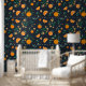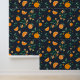 Accentueer je muren met dit rijke citrus patroon behang. Het beschikt over levendige sinaasappels en oranje bloesems met bladerig gebladerte dansend over een donkerdiepe marineblauwe achtergrond.