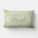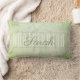 Rustieke textuur salie groen gooi kussen met naam in script en san serif typografie voeg uw aangepaste voornaam in script en uw achternaam in sans serif voor een contrast eigen aangepaste familienaam of monogram. Stijlvol en artistiek.