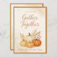 Rustieke Verzamel Samen Vriendschap Pumpkins uitnodiging. Elegant script "Verzamel samen" met waterverf pompoenen en bladeren. Een warme en gastvrije Vriendschapsuitnodiging. Kunstwerken met AI-ondersteuning. Ik kan een kleine commissie verdienen met affiliate links.