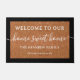Rustic welkomstkostuum, gepersonaliseerd met familienaam en gevestigd jaar.