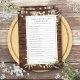 Met mooie slingerlichtjes en delicate waterverf groene bladeren op een rustieke houten achtergrond, kan dit leuke bruidsfeest spel worden gepersonaliseerd met je eigen wie kent de bruid het best vragen. Ontworpen door Thisisnotme