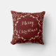 Een hand geschetste krans, door Cindy Bendel, omcirkelt de tekst Merry Christmas. Botanisch gebladerte van bladeren en takken omringen de krans. De achtergrondkleur is diep wijnrood. De andere kant zegt Happy Thanksgiving, je kunt beide kanten personaliseren met je eigen tekst. Deze home decor accent kussens zijn geweldig voor een rustiek thema. © Cindy Bendel Creative Design LLC Alle rechten voorbehouden