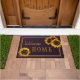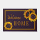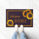 Rustiek modern Welkom Home deurmat sjabloon met grote geel gouden zonnebloemen.