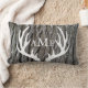 Grijze schors achtergrond met witte hertengeweien silhouet en je keuze voor monogram tekst op voor en achter! Deze lumbale kussen zijn een uitstekend geschenk of accent voor dat luie huis dat in een prachtige houten omgeving is weggestopt.