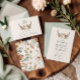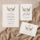 Rustige loof, florale en stag antlers bruiloft, behalve de datumkaart. Met prachtige waterverf bladeren, witte floralen, houten plak en scripthandschrift. Deze moderne uitnodiging zal zeker de stijl bepalen voor je komende feest. Terracotta Roestruger.
