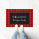 Moderne roodrode zwarte buffel welkome familienaam Doormat. U kunt de tekst en de naam gemakkelijk veranderen om het te personaliseren.