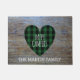 Cute rustic plaid camping doormat maakt een geweldig decor cadeau voor overlevenden, gepensioneerde paren, kampeerders en natuur liefhebbers. De gepersonaliseerde, rustige boomvorm leest leest - de Tevreden Campers met een tekst sjabloon voor het toevoegen van uw gepersonaliseerde familienaam of om het even welke douanetekst u bij de bodem met handgeschreven het kijken brieven in om het even welke kleur of stijl die u verkiest. In het midden is een trendy, zwart en groen buffel controlecatroon hart dat 'Happy Campers' leest in whimsical stijl. Tegen een achtergrondfoto van oud, noodlijdend hout. Een unieke pensioengift ook. Het zou er geweldig uitzien voor een RV of een luie blokhut.