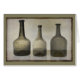 Rustische, nog levendige kunst met 3 antiek flessen in gemuteerde tinten groen en bruin.