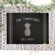 Welkom gasten in je huis met dit charmante, rustige boerendevormig hormoon. Het gepersonaliseerde ontwerp kenmerkt uw familienaam of naam van het boerderij in neutraal dan niet letters, samen met uw jaar gevestigd en een ananassolillustratie. De streep van de helling die op een rijke zwarte achtergrond detailleert voltooit het ontwerp.