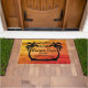 Tropisch strandhuis heet een slaapzool met een bijtende houten achtergrond en zwarte palmbomen silhouette.
