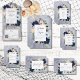 Dit trouwkaartontwerp is voorzien van een smalle bruine, marineuze, perzikse, bruine en witte floralen op een blauw-waterverf-welkomstachtergrond. Het bevat ook nautische elementen zoals touw, zeester en anker. Ideaal voor de bestemming, het strand of de waterzijbruiloft. Creëer door Simply Farmhouse Press, maakt het deel uit van de Rustic Floral Beach Nautical Wedding Suite.