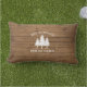 Geef uw land thuis een persoonlijk tintje met prachtige, rustige terrasse lumbale kussens, met jouw naam en "Familiecabine", Ranch, Cottage of andere tekst, samen met de vastgestelde datum en locatie indien gewenst. Dit aangepaste, unieke ontwerp biedt een stijlvolle landtekst met een witte silhouet van dennenbomen op een drukplaat van houten planken. Om meer design als deze te zien, kunt u mijn winkel hier op Zazzle.com/Rustic_Charm bezoeken. Bedankt.