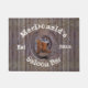 Een rotsachtige westerne cowboy zout met de hendel, met een oude houten schuurdeur, een gelukzak, een wagon wiel en cowboylaarzen die perfect zijn voor ranchers en cowboys om hun naam aan toe te voegen.