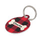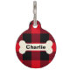 Dit rustige rode en zwarte gebuffe hond ID label bevat een wit bot aan de voorkant met een plek voor de naam van je hond die je kunt personaliseren. De rug van het label heeft een zwarte achtergrond met witte teksten en een plaats om jouw naam en telefoonaantal te zetten helpen uw huisdier veilig houden. Ontworpen door kunstenaar ©Susan Coffey.