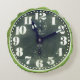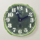 Geweldig cadeau voor iedereen die van die  retro-stijl houdt of interessant, leuk en griezelig. Met een heldere groene klok die de randen rond heeft gezet voor die klassieke, noodlijdende rustige look. Het klokgezicht heeft een bord of een kartonnen afwerking met witte stippen en getallen, en de handen van deze tijdklok zijn zwart met witte details.